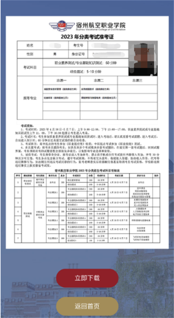 3.登录后,请考生仔细核对个人信息,核对无误后❤️🔥,点击下方“立即下载”,下载完成后👩🏼,即可保存图片👨🏻🔧,打印准考证。