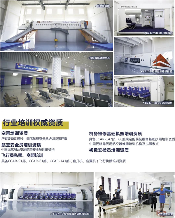 引进行业专家和IATA课程🏋🏿♂️,拥有各类行业培训资质。航空实训中心配置领先的航空实训设备🛎,飞行基地与100余架飞机保障训练,稳定的校外实训实习基地确保专业培训与行业无缝对接。