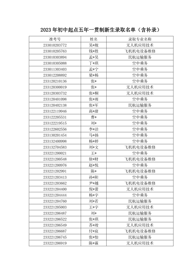 2023 年初中起点五年一贯制新生录取名单(含补录)