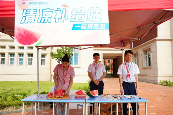 为新生和家长分发扇子👨‍🦳、冰水和西瓜