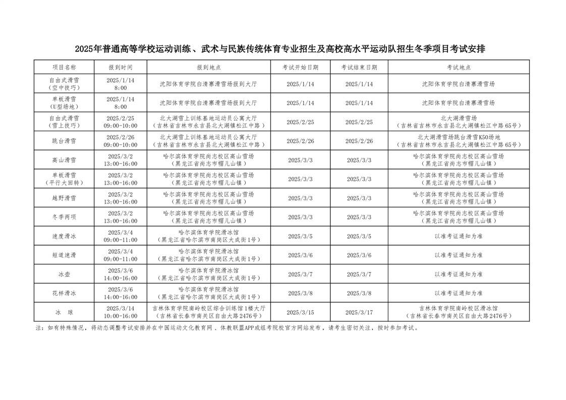 2025年普通高等学校运动训练🤶🏽、武术与民族传统体育专业招生及高校高水平运动队招生冬季项目考试安排