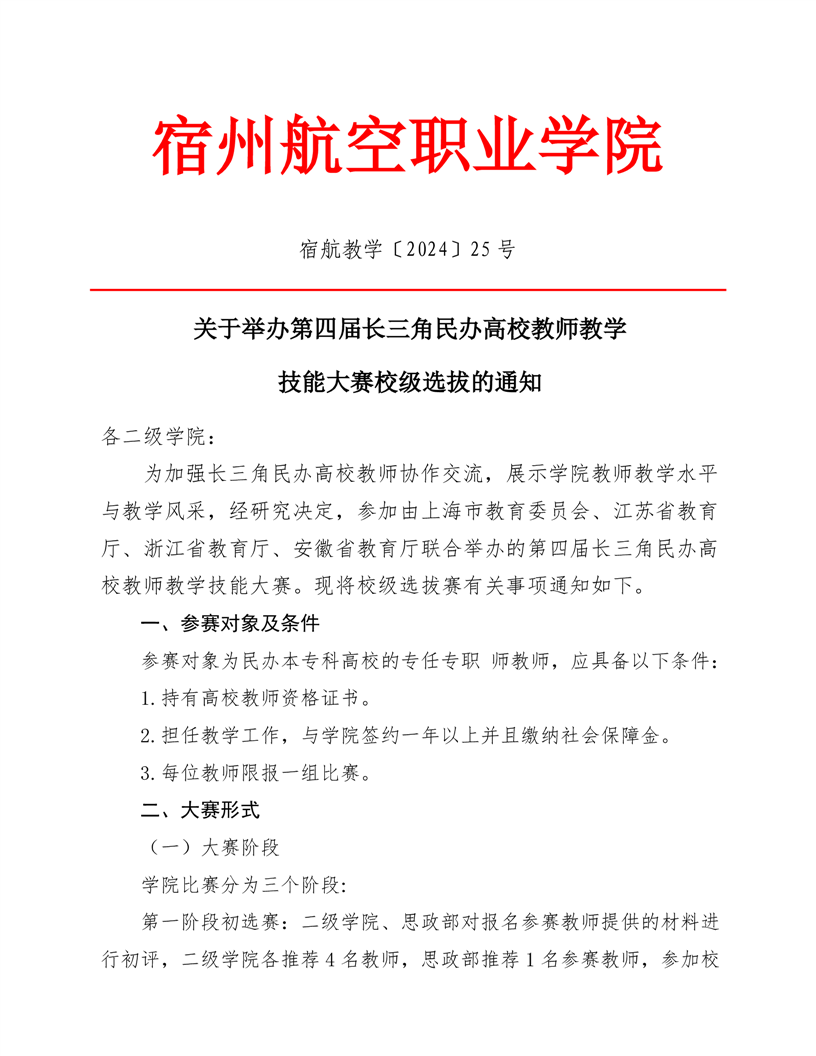 关于举办第四届长三角民办职业院校教师教学能力大赛校级选拔赛的通知