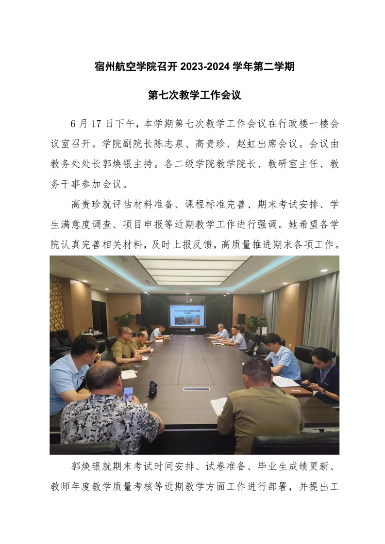 宿州航空学院召开 2023-2024 学年第二学期第七次教学工作会议