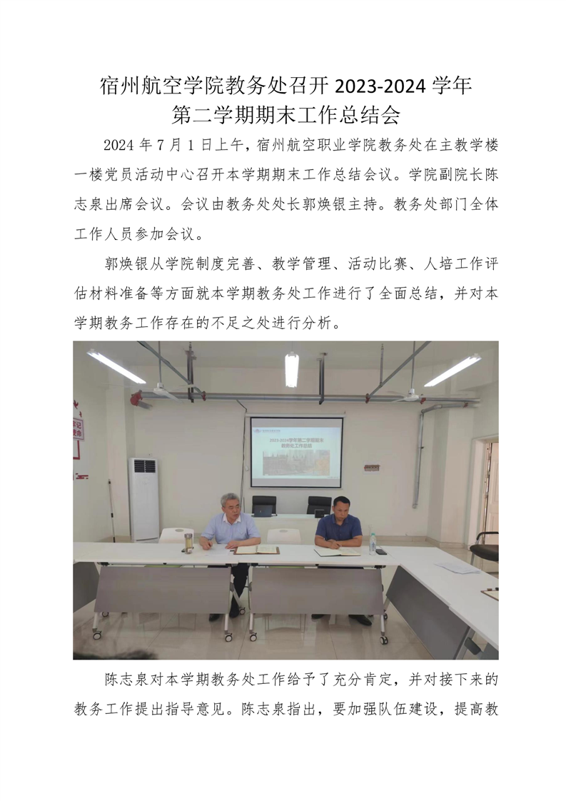 宿州航空学院教务处召开2023-2024学年第二学期期末工作总结会