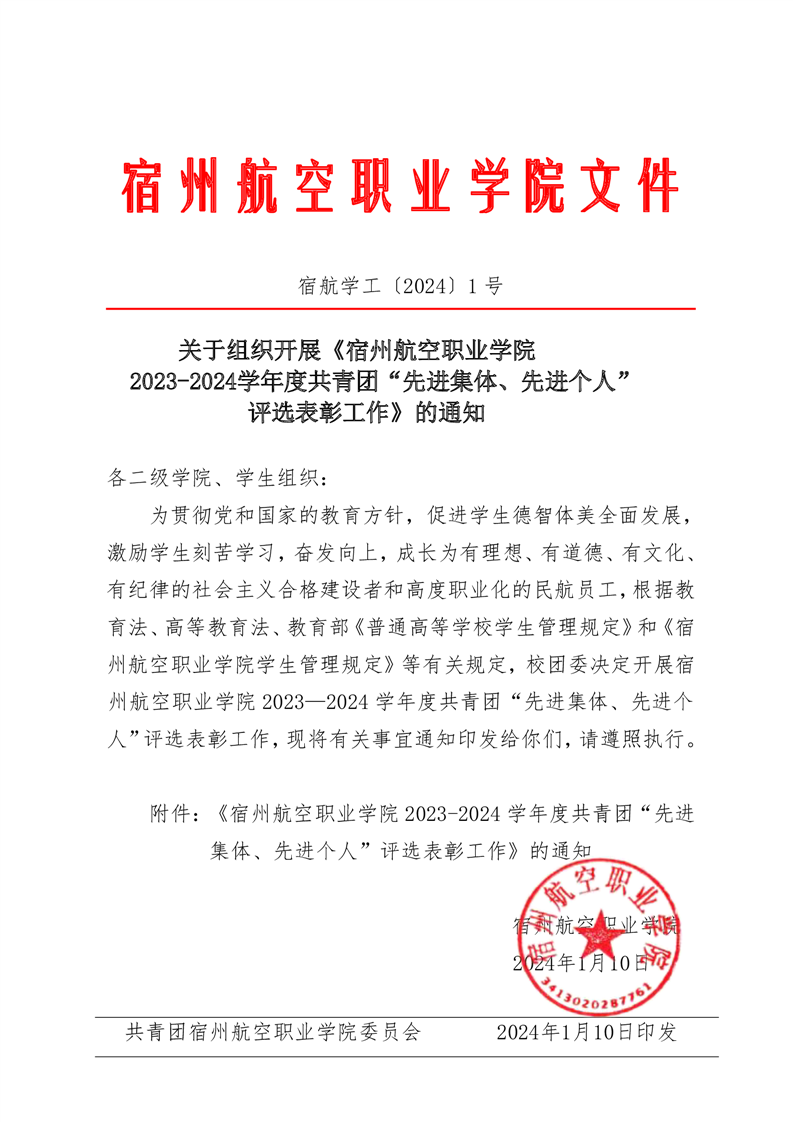 关于组织开展《彩神Vll学院 2023-2024学年度共青团“先进集体、先进个人” 评选表彰工作》的通知