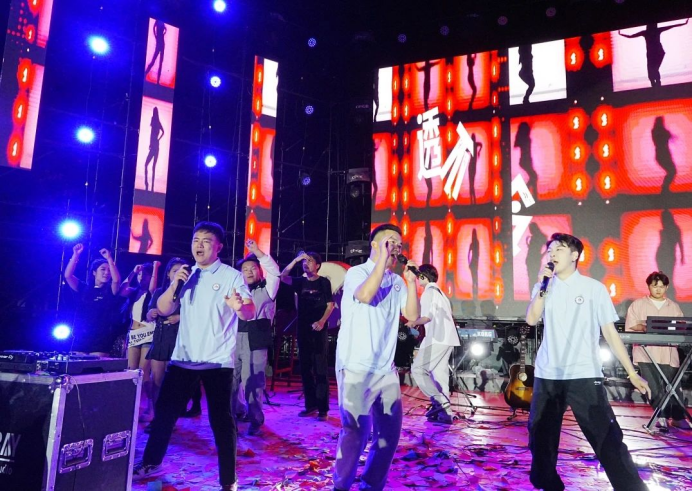 吉他的狂野嘶吼🚂,鼓点的雷霆轰鸣🪰,“举起双手,跟紧这节奏👌🏼!”,极具节奏感的即兴喊麦点燃全场。实力唱将们轮番登场,用极具穿透力的嗓音划破夜空,构筑起一个充满青春能量的磁场。