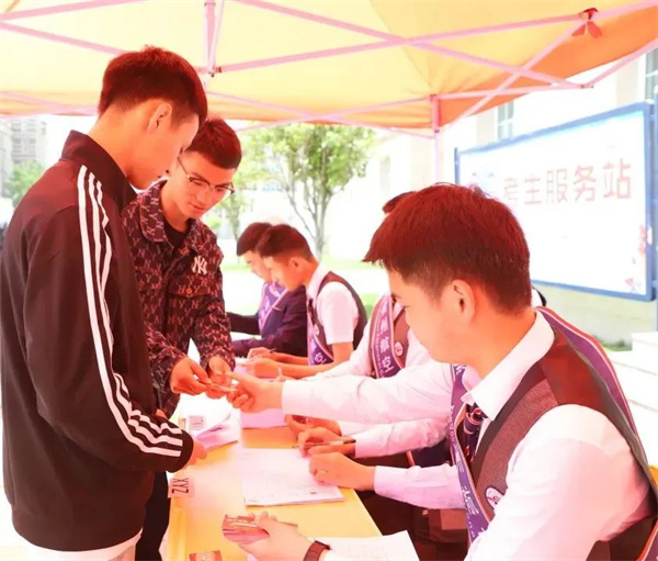 在校外还有老师去高铁站迎接考生,还会负责把考生们送到校园。