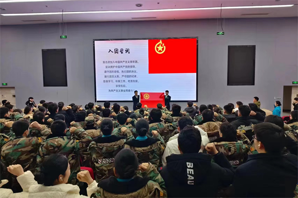 全体人员紧握右手🧔🏼♂️,重温入团誓词。这一刻🚣🏼,在场学生深切地感受到作为团员的荣耀和责任。