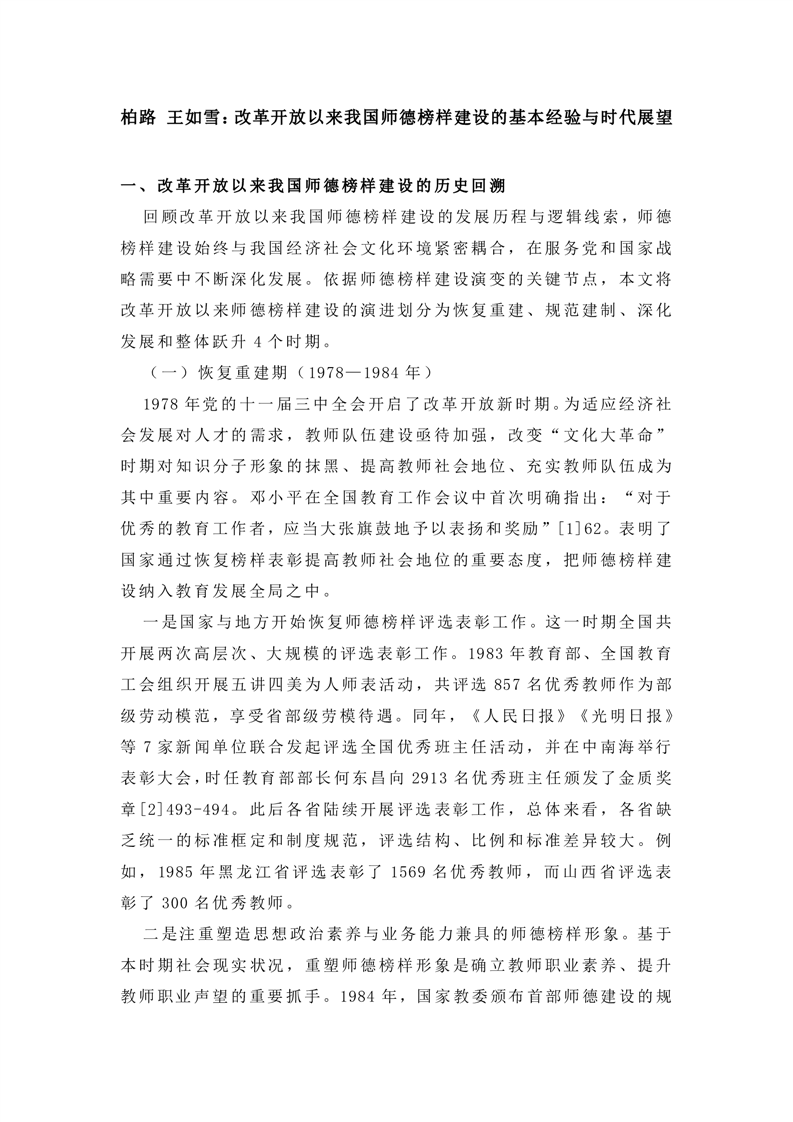 柏路 王如雪🏋🏿:改革开放以来我国师德榜样建设的基本经验与时代展望