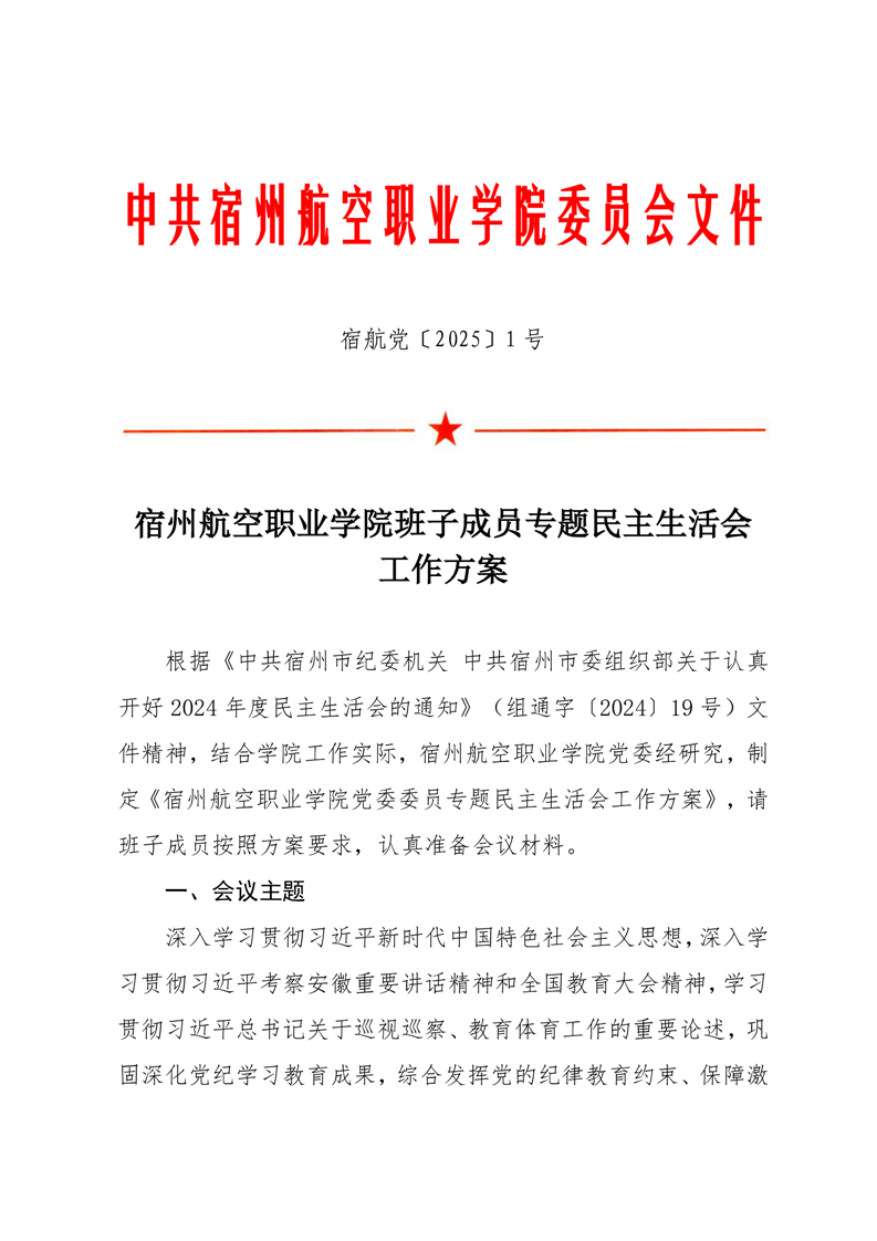 彩神Vll学院班子成员专题民主生活会 工作方案