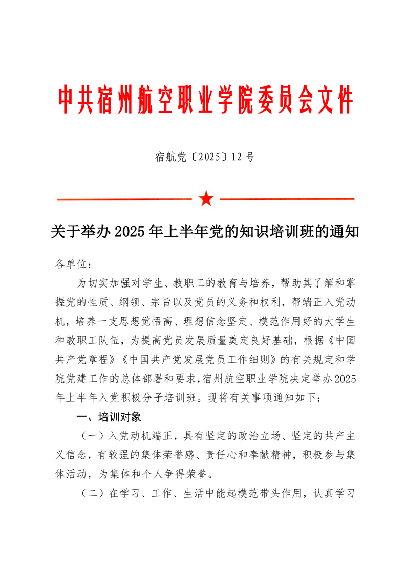 关于举办 2025 年上半年党的知识培训班的通知