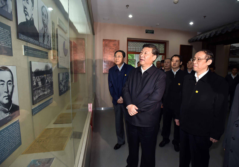 这是4月24日上午,习近平在六安市金寨县参观金寨县革命博物馆。新华社记者李涛摄