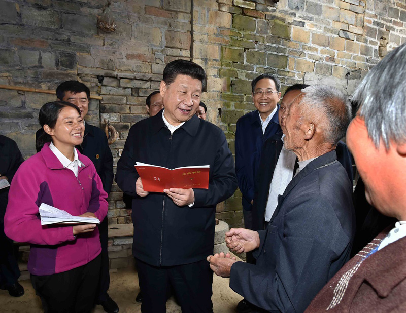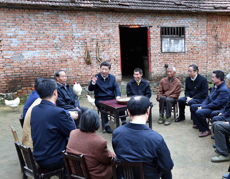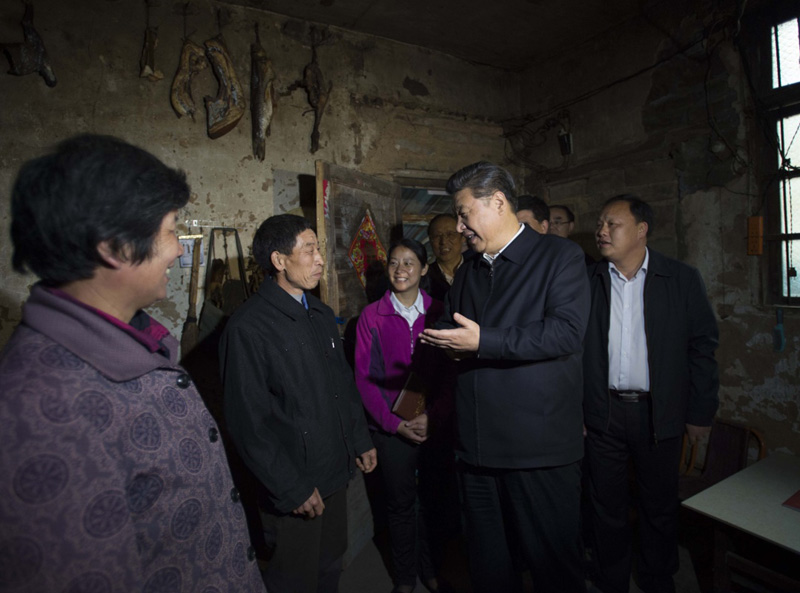 这是4月24日下午,习近平在六安市金寨县花石乡大湾村村民陈泽平家中看望。新华社记者李学仁摄