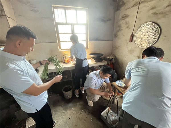 来到一名建档立卡贫困学生家中,留意到厨房的设施后,丁奕华主动系上围裙生火做饭。大家一起为学生和家长做了一顿充满暖意的饭菜👷🏼👮🏼♂️。饭桌上👨🏼🍳,走访小组成员与学生家长促膝长谈,仔细询问家庭的收支情况🧑🏼🍳、孩子在校的学习生活细节,不断鼓励学生要坚定信心,凭借知识改变命运。