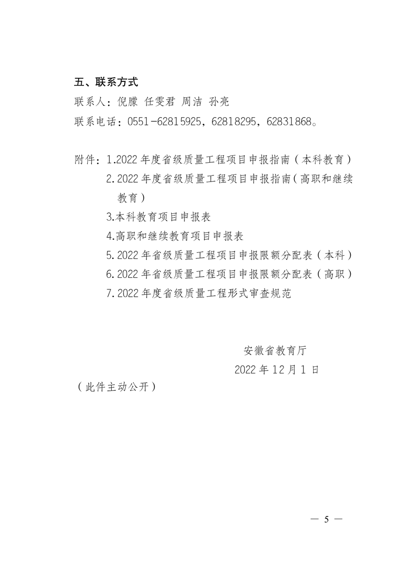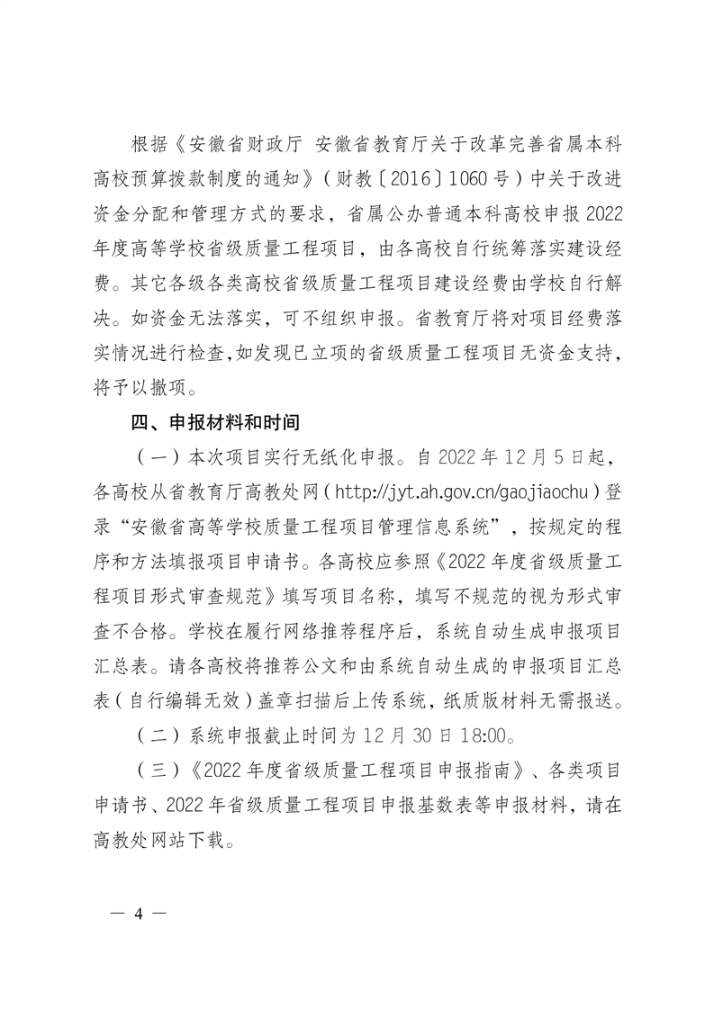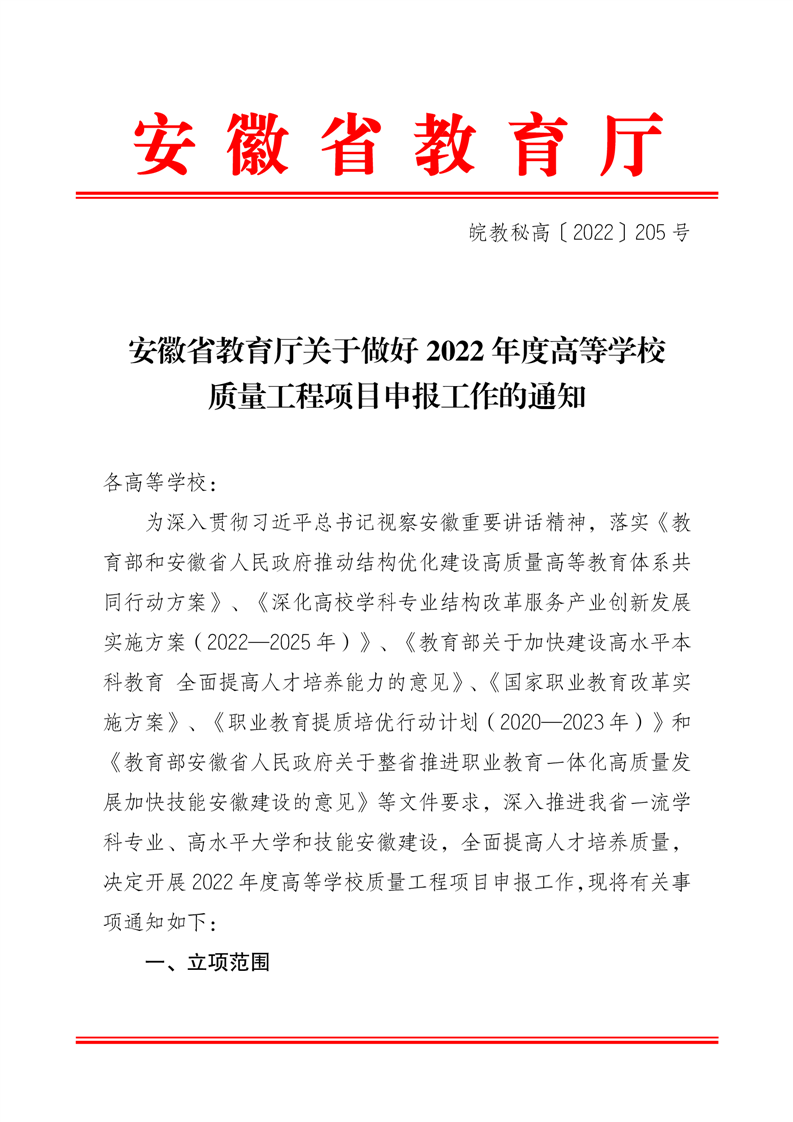 安徽省教育厅关于做好2022年度高等学校质量工程项目申报工作的通知