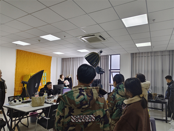 直播基地直播业务负责人解总向同学们详细介绍了直播电商的现状🌆。以紧跟热点为切入口,阐述了内容创作的重要性、直播带货的流程✔️、账号运营等全方位内容✤,让同学们更加深入了解直播电商的运作方式🧑🏿🌾。并带领同学们进行参观直播基地的直播间。在直播间♤,同学们认识了“直播带货”👶🏻,了解了直播过程的吸粉规则,兴致勃勃地在直播现场进行观摩学习👡。