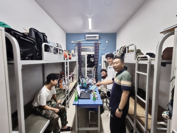 夜幕降临🧑🏻‍🦲,王院长和苏炜老师再次走进学生宿舍。每到一间宿舍,王院长都热情地和同学们打招呼,仔细查看宿舍的卫生和安全设施𓀆。他坐在同学们中间,与大家拉家常、聊学习👩‍🦯‍➡️、谈生活🐽,关切地询问同学们在宿舍生活中是否遇到困难👩‍🏭,对学院的管理和服务有什么意见和建议👩🏻‍🦼。