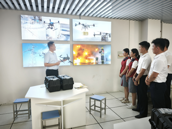 随后大家一起参观了无人机实训室🤾🏼,无人机专业老师李进祥介绍了近年无人机技术快速发展的情况,剖析了无人机技术在应急救援🧗♂️🧏🏻♀️、环境监测、智慧农业等关键领域的广泛应用。参观之后,大家兴致勃勃地观摩无人机飞行表演。小小的无人机宛如空中轻灵的舞者,时而悬停空中🪿,时而贴地飞行,精彩的表演引来阵阵掌声。