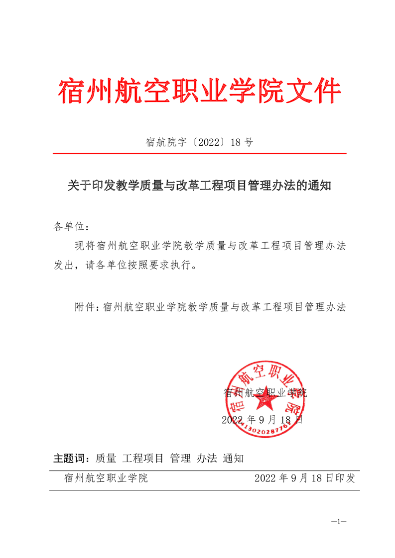 关于印发教学质量与改革工程项目管理办法的通知