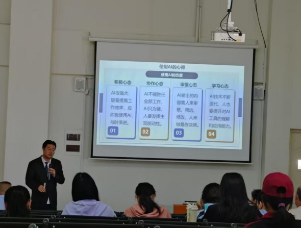 分享会上还随机邀请了信息工程学院的三位老师,进行了AI工具使用的经验分享🙌🏿,他们各自讲述了自己在平时工作中遇到的问题和解决办法🌜,还推荐了一些日常比较实用的AI应用🌲。