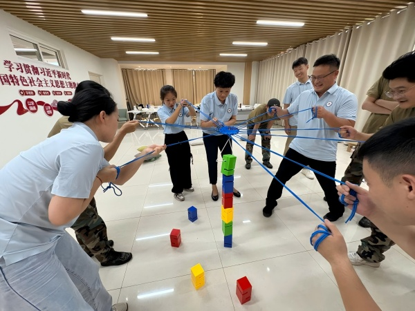 开户礼-情感银行启动阶段,每位教师填写专属情感IC,从同事身份”教师身份”“银行密钥三个维度完成 人设金卡认证,清晰梳理自身协作优势与成长需求🏄🏿‍♀️。核心环节情感存取实战中,丰富的互动挑战让教师们沉浸式体验协作与沟通的魅力😢。信任倒-团队储备金环节Ⓜ️,小组搭建信用保护网,教师们依次完成后倒并喊出协作承诺🤷🏻‍♀️,成功则为团队公共账户赢得红币🦹‍♂️,若保护网松动则需通过集体平衡训练支付利息,在考验信任与协作的过程中,强化了团队凝聚力❇️;智慧塔-跨学科基建任务里,各组教师协作吊装贴有学科标签的积木,在3分钟内争建7层以上智慧塔并放置学生需求卡,跨学科协作能力与对学生需求的关注度在实践中得到提升👱🏼;“60 秒速记密码战中,教师们分工协作,通过思维导图、记忆口诀🚵🏻‍♂️、盲砖摆模型等方式高效复原知识碎片矩阵,展现出强大的团队协作与信息整合能力。